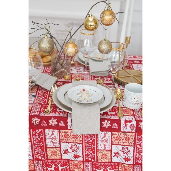 Скатерть «Доляна» Скандинавский рисунок 220*144 см, 100% хлопок, рогожка, 164 г/м2