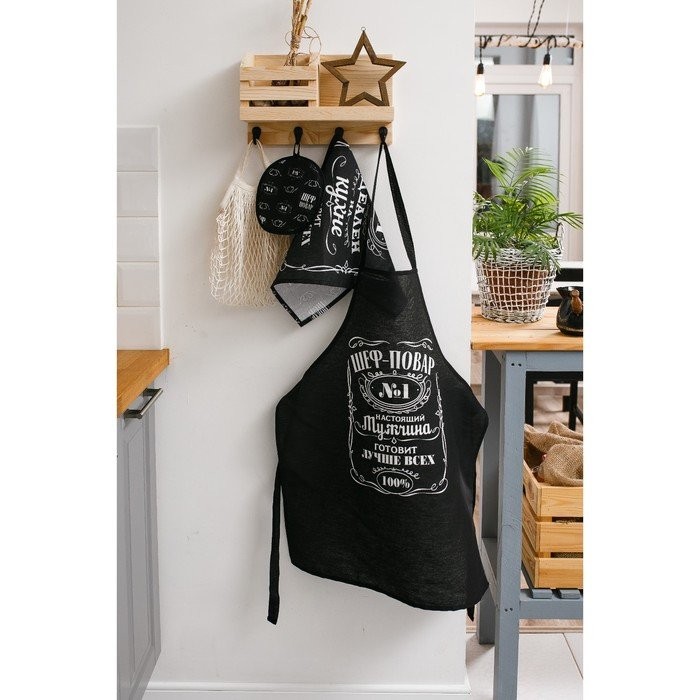 Кухонный набор 3 пр. «Шеф-повар №1» фартук 60×70 см, прихватка 20×20 см, полотенце 35×60 см