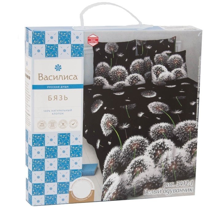 Постельное бельё евро «Василиса» Белый одуванчик 200×215 см, 200×220 см, 70×70 см — 2 шт.