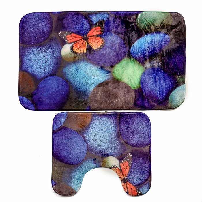 Набор ковриков для ванны и туалета Доляна «Камни», 2 шт, 38×45, 43×73 см