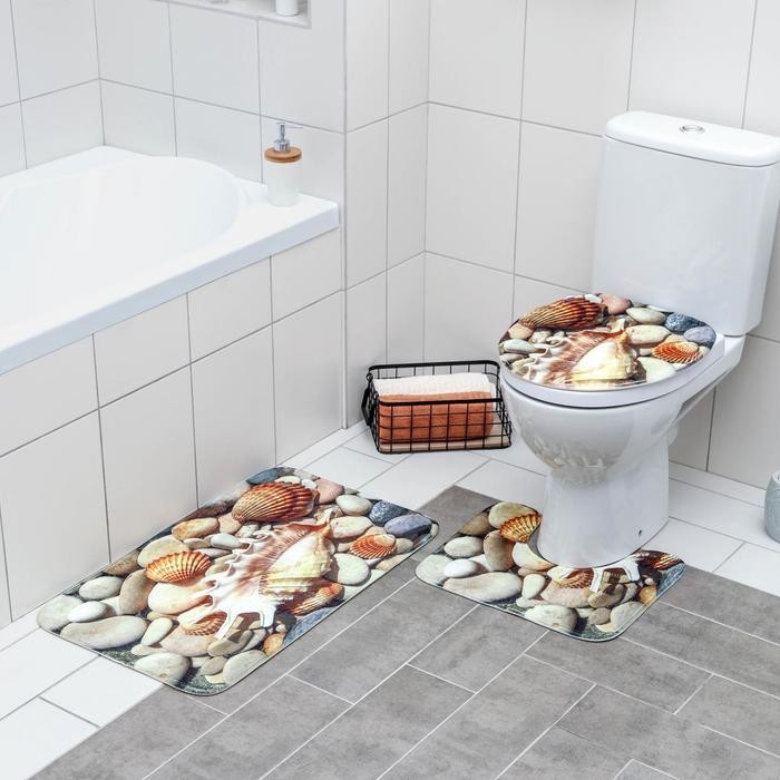 Набор ковриков для ванны и туалета Доляна «Ракушки», 3 шт: 37×45, 37×45, 45×75 см