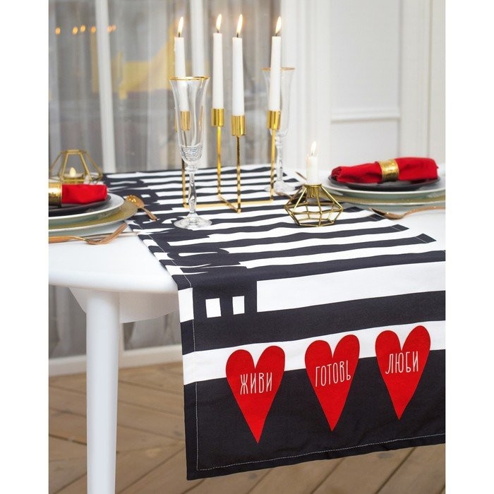 Дорожка на стол «Живи, готовь, люби» 40*146 см, 100% хл, саржа 190 гр/м2
