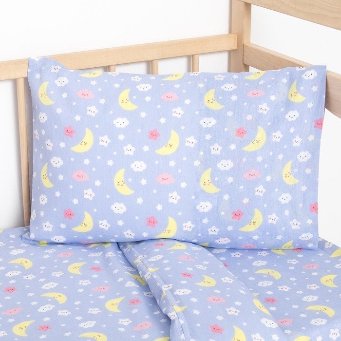 Постельное бельё детское «Спокойной ночи», цвет голубой, 112×147, 100×150, 40×60 1 шт, ситец/бязь, хл 100%