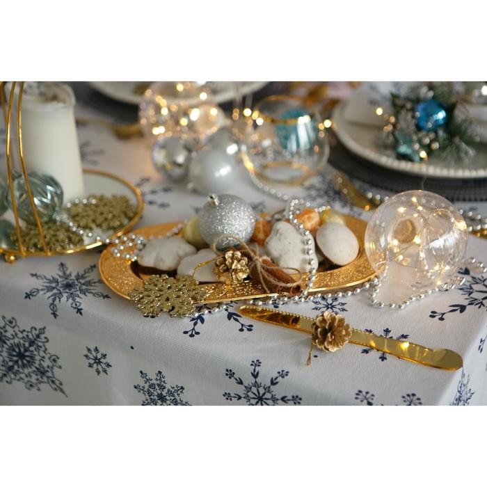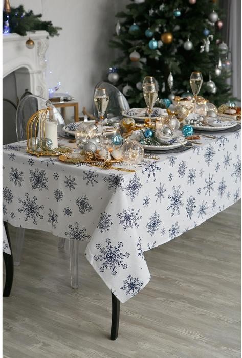 Скатерть Доляна «Новый год: Синие снежинки» 110×149 см, 100% хлопок, 164 г/м2