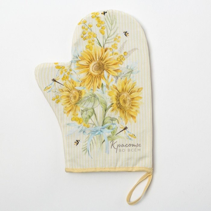 Варежка-прихватка «Красоты во всем» 20х28см, саржа, 100% х/л, ватин 250г/м2