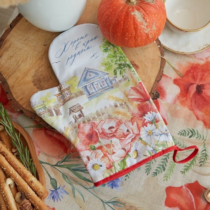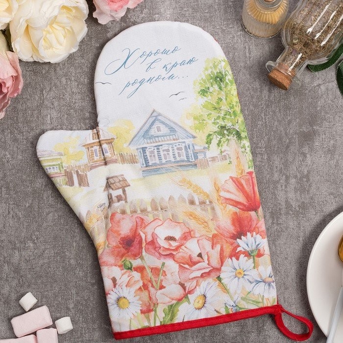 Варежка-прихватка «В краю родном» 20х28см, саржа, 100% х/л, ватин 250г/м2