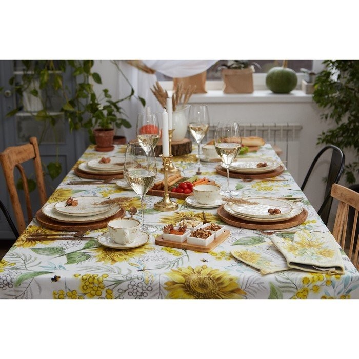 Скатерть «Этель» Солнечные цветы 220×147 см, 100% хлопок, саржа 190 г/м2