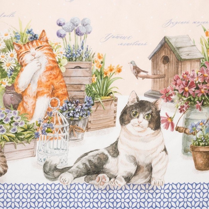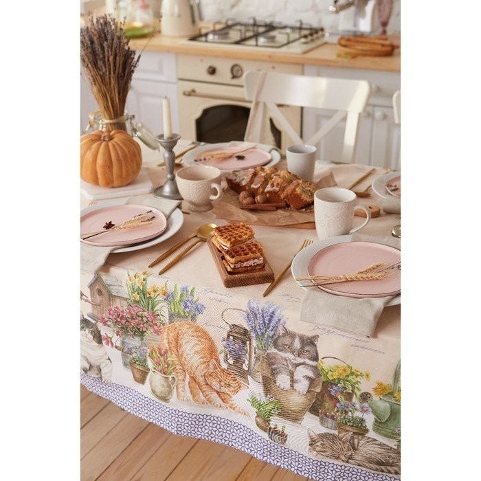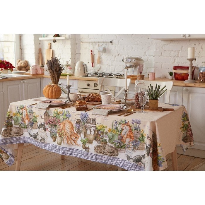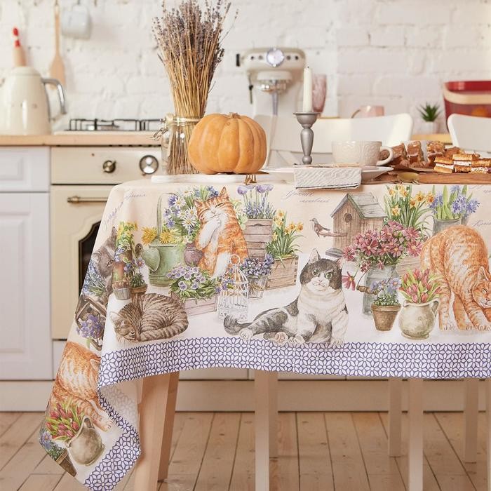 Скатерть «Этель» Уютные коты180×147 см, 100% хлопок, саржа 190 г/м2