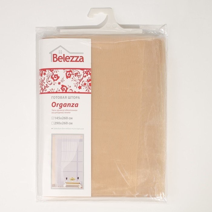 Штора Organza 145×260 см, шампань, шторная лента, 100% полиэстер