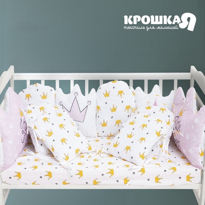 Бортики в кроватку Крошка Я «Little queen» (60х42см-2шт, 30х42см-4шт, 30х30см-4шт), 100% хлопок