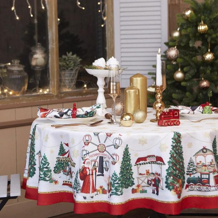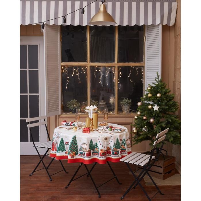 Скатерть «Этель» Новогодняя ярмарка d=220 +/- 3см с ГМВО, 100%хл, саржа 190 гр/м2