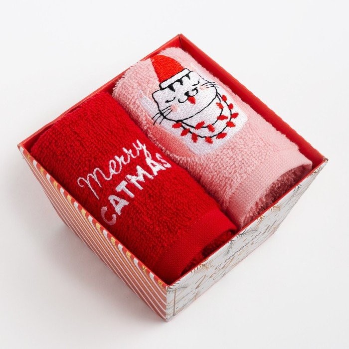 Набор полотенец «Merry catmas» 30×60 см-2 шт, хлопок 340гр/м2