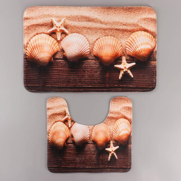 Набор ковриков для ванны и туалета Доляна «Ракушки», 2 шт: 45×70, 39×45 см
