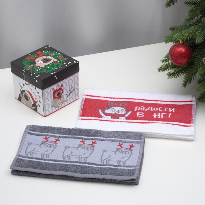 Набор махровых полотенец «С НГ, короче» 30×70 см — 2 шт, 100% хлопок, 370 гр/м2