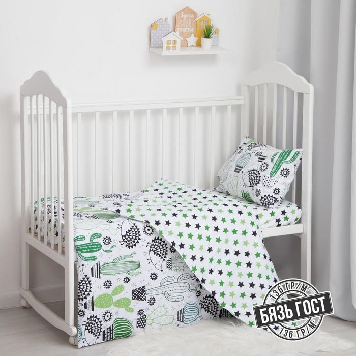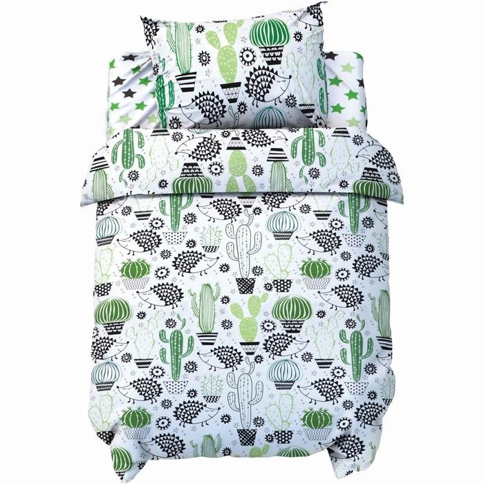 Постельное бельё детское Крошка Я «Ёжики и кактусы», 147×112 см, 60×120 + 20 см, 40×60 см