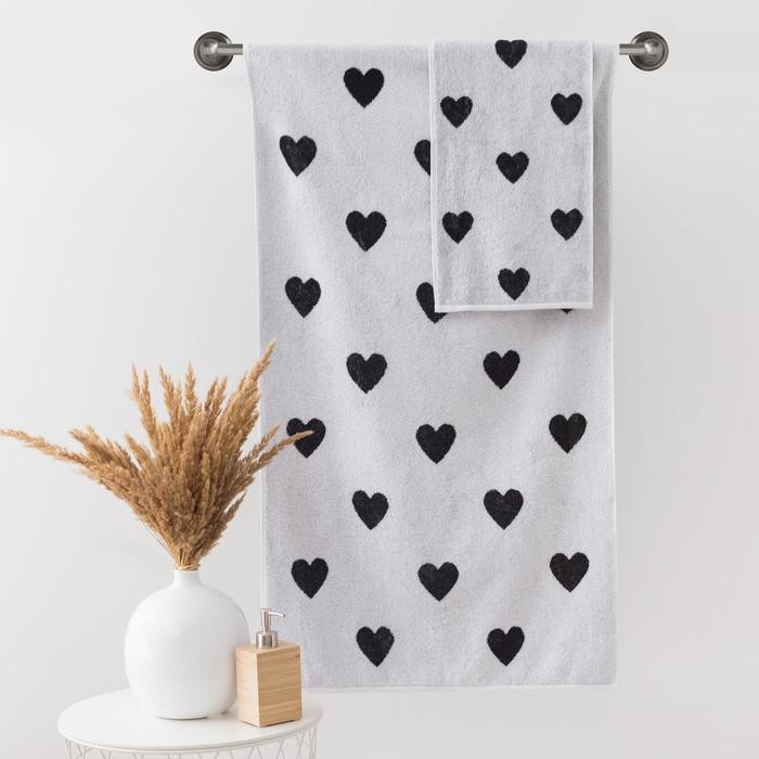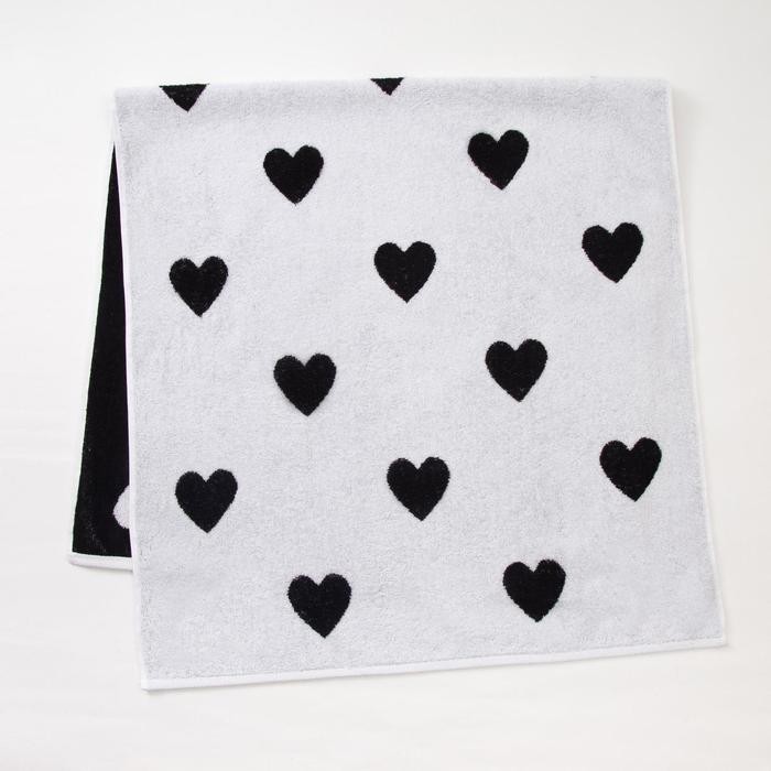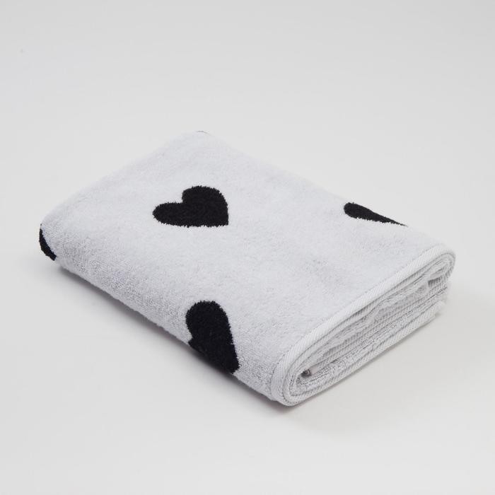 Полотенце махровое Этель ЧБ «Сердечки черные», пестроткань, 70×130 см