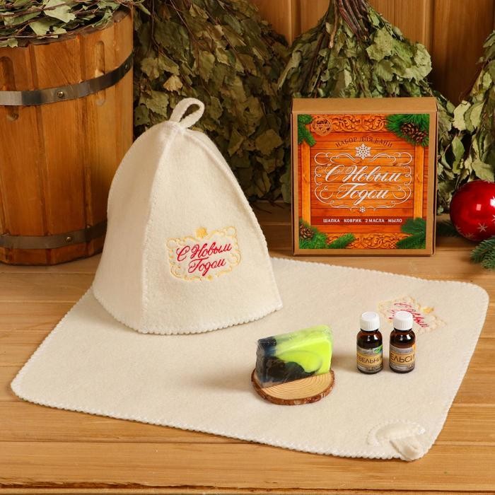 Банный набор «С новым годом» шапка, коврик, 2 масла, мыло