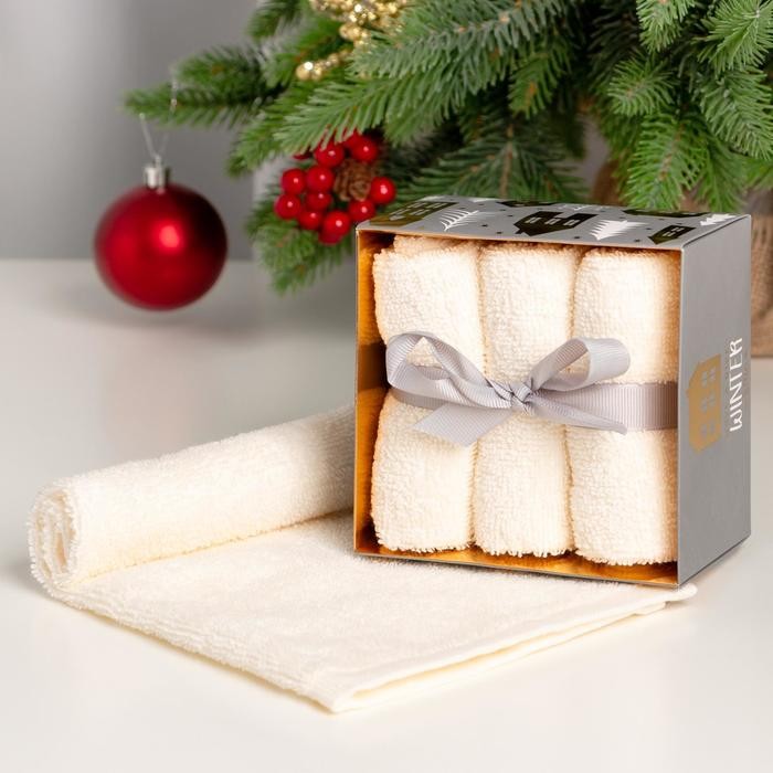 Набор махровых полотенец «Winter» 30×30 см — 3 шт, хлопок 340гр/м2