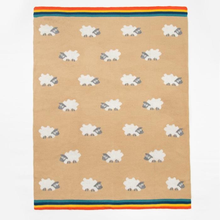 Плед вязаный Крошка Я «Овечки» цв. бежевый, 80*100 см, 100% хлопок