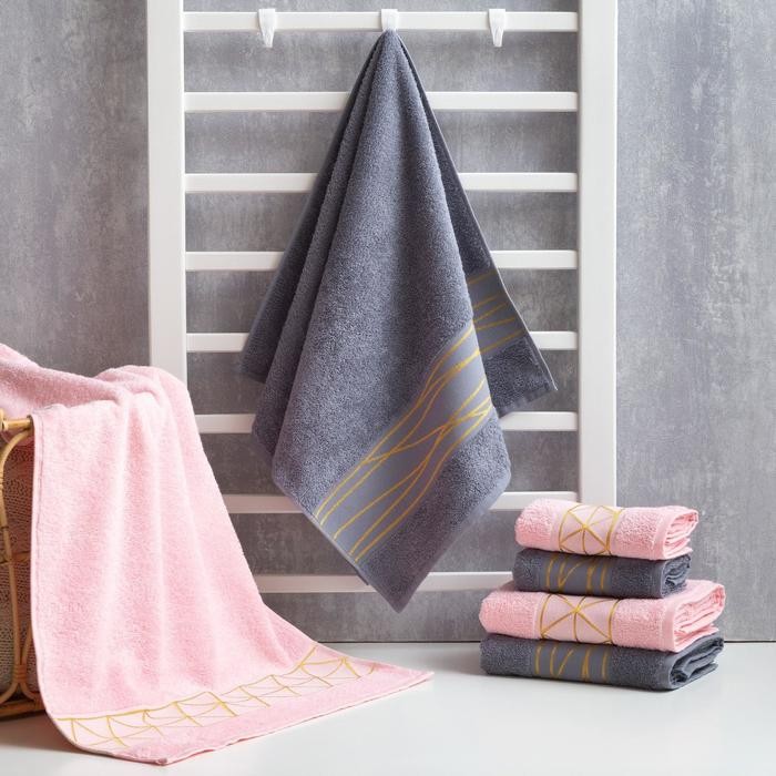 Полотенце махровое «Полосы» серый 50×90 см, 100% хл, 370гр/м2