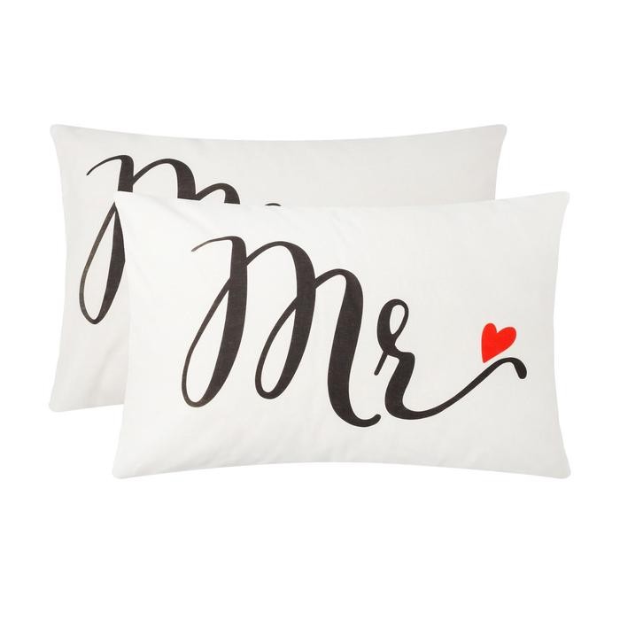 Комплект наволочек «Этель» Mr&Mrs 50×70 см — 2 шт, 100% хлопок, бязь