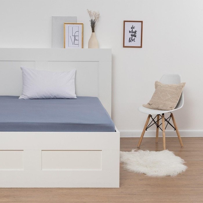 Трикотажная простынь на резинке 90х200х25см, серый кулирка