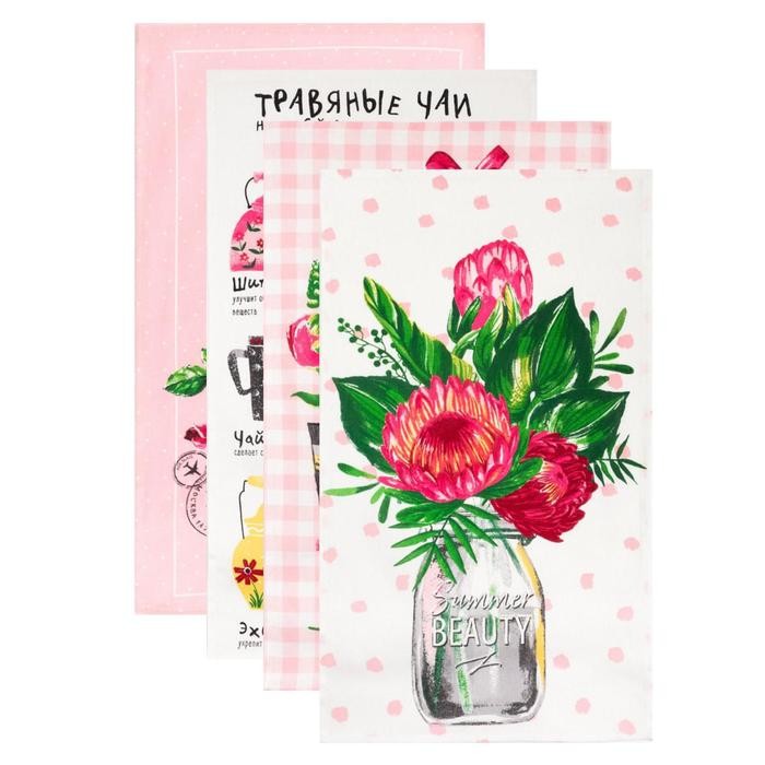 Набор кухонных полотенец Доляна «Самой любимой», 35х60см-4шт, 100% хл