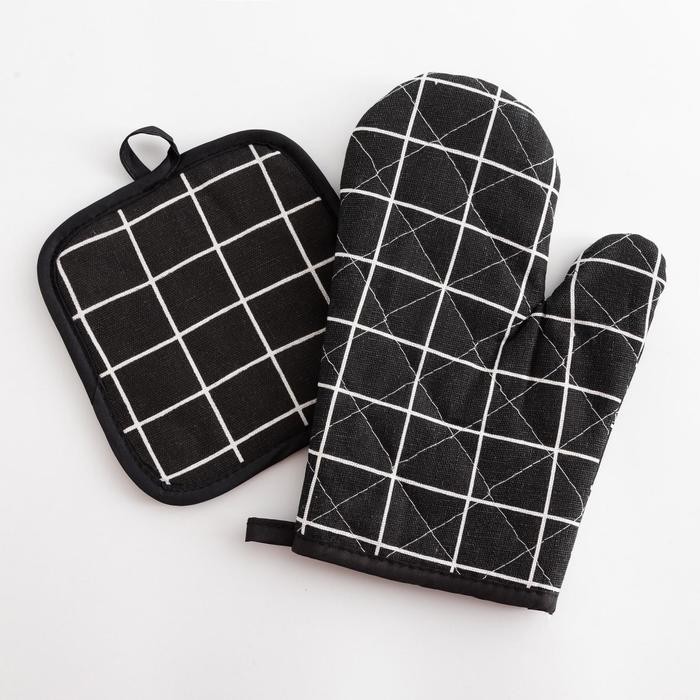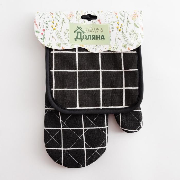 Кухонный набор Доляна «Клетка» цв.черный, прихватка 17*17 см, рукавица 26*16 см,100% п/э
