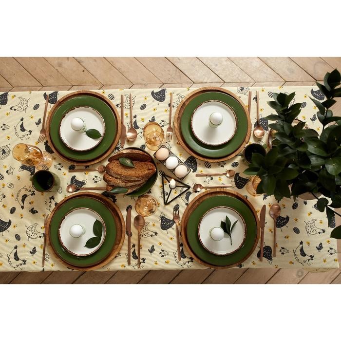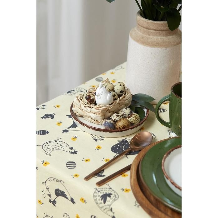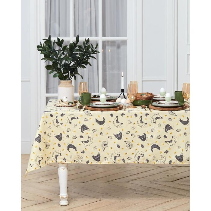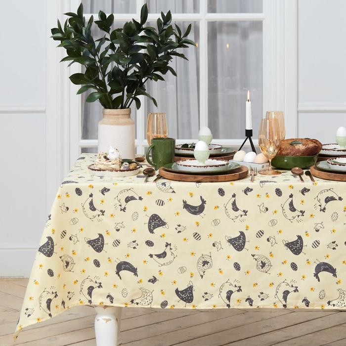 Скатерть пасхальная, Доляна Сhicken farm 220×144 см, 100% хлопок, 164 г/м2