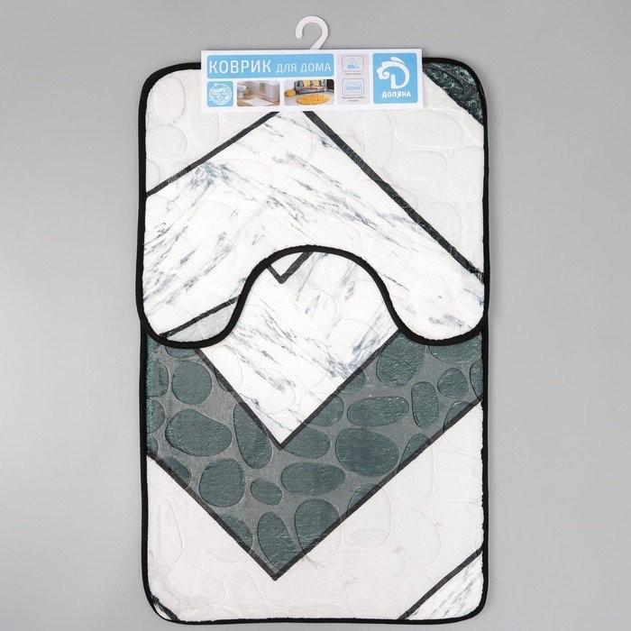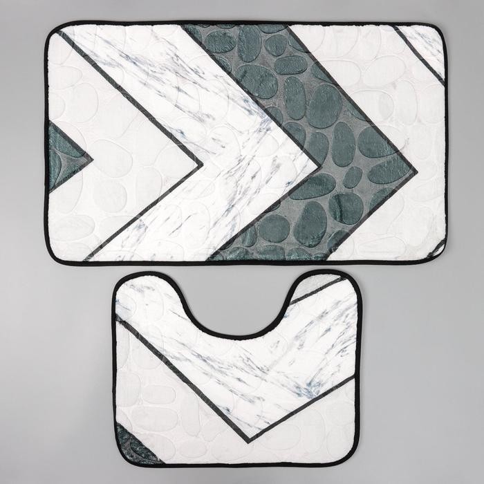 Набор ковриков для ванны и туалета Доляна «Галька геометрическая», 2 шт: 40×50, 50×80 см, цвет МИКС