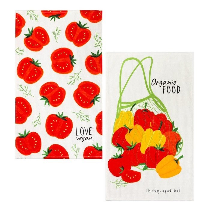 Набор кухонных полотенец Доляна Love vegan, 35х60см-2шт, 100% хл