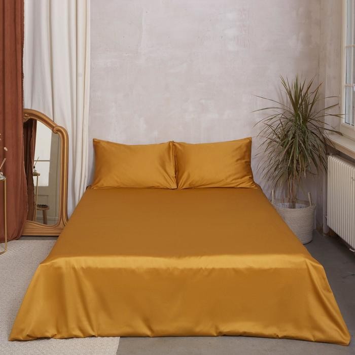 Простыня Этель 220*235 см, цв.горчичный, 100% хлопок, мако-сатин, 125 г/м²