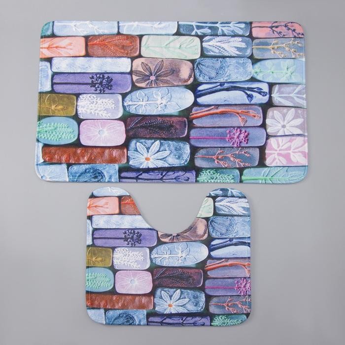 Набор ковриков для ванны и туалета Доляна «Кирпичики», 2 шт: 40×50, 50×80 см
