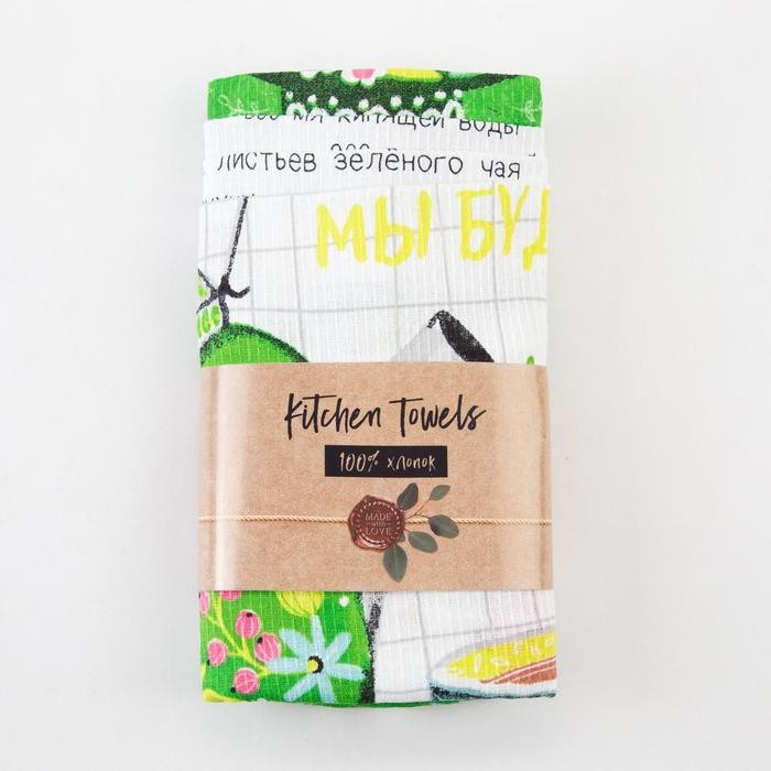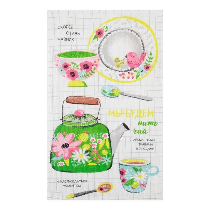 Набор кухонных полотенец Доляна «Ароматный чай», 35х60см-4 шт, 100% хл, вафля 160 г/м2